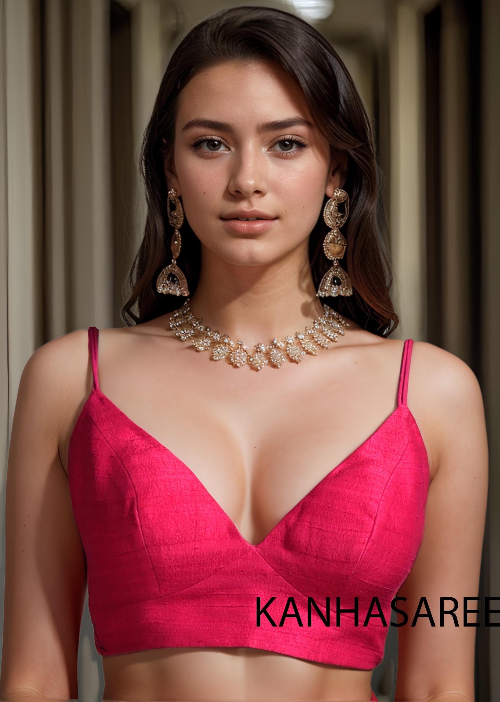 Embrace elegance with our Pink Silk Saree Blouse ! This readymade, padded sleeveless crop top features a V-neck and sweetheart design, perfect for any saree. Crafted from luxurious silk, it offers both comfort and style for any ethnic occasion. Elevate your wardrobe with this authentic designer piece today!Introducing our exquisite Pink Indian Sari Blouse, a perfect blend of tradition and contemporary style. This readymade blouse is designed for the modern woman who appreciates elegance with a touch of glamour. Here are the key features that make this blouse a must-have: