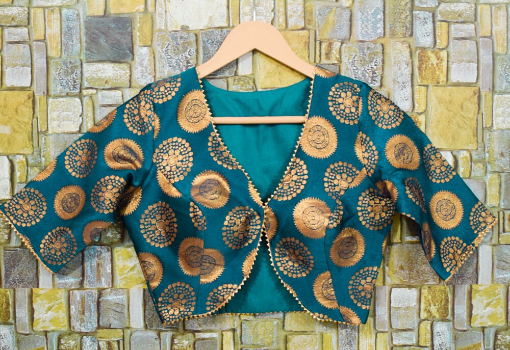 Transform your wardrobe with our Designer Peacock Blue Brocade Choli Blouse! Tailored for elegance, this custom-made, padded top features a delicate lace V-neck, offering both style and comfort. Ideal for parties and special occasions, it guarantees a perfect fit that flatters every figure. Handcrafted with attention to detail, this unique blend of traditional craftsmanship and modern design will make you stand out. Order now for a touch of timeless beauty!