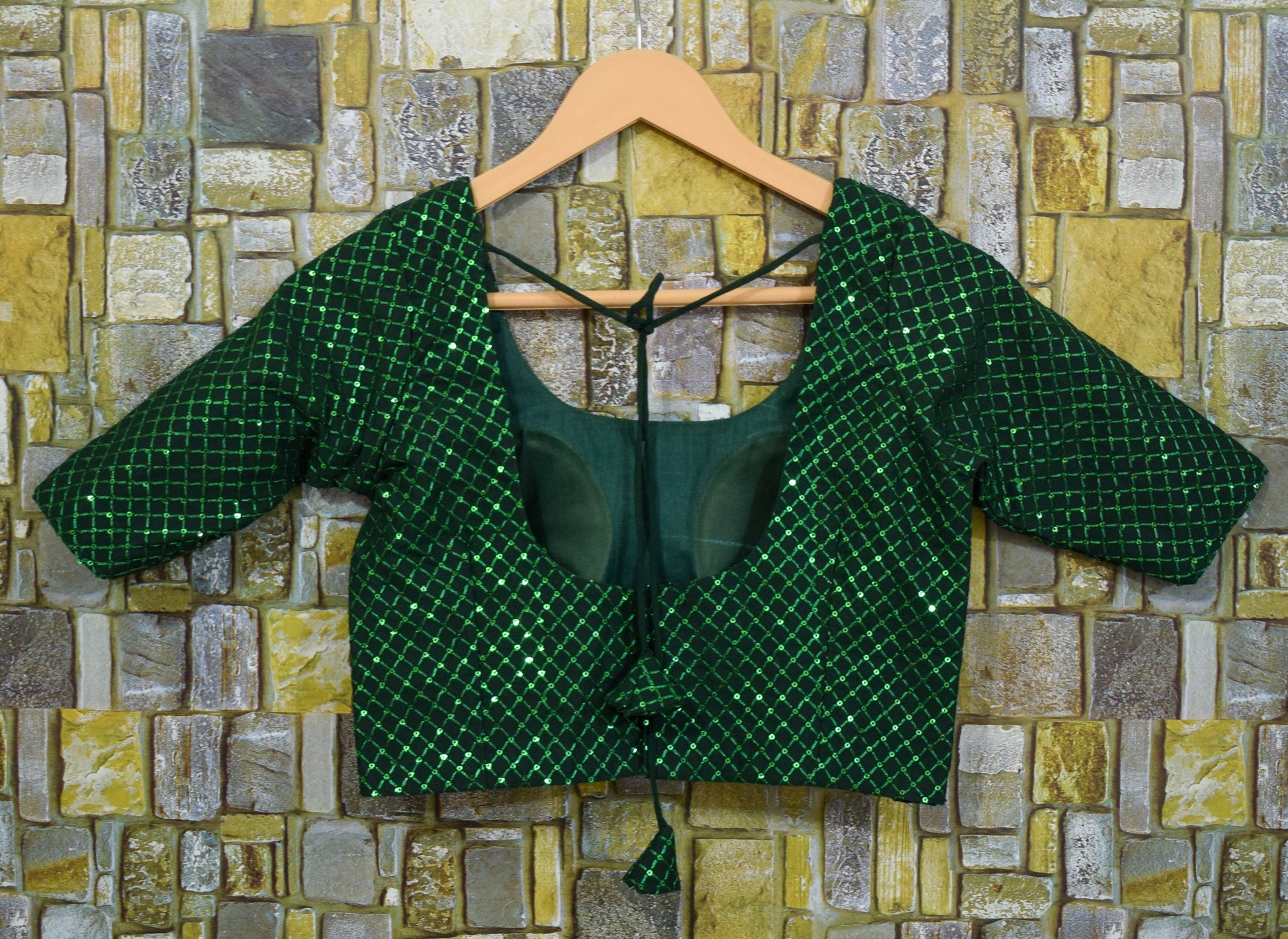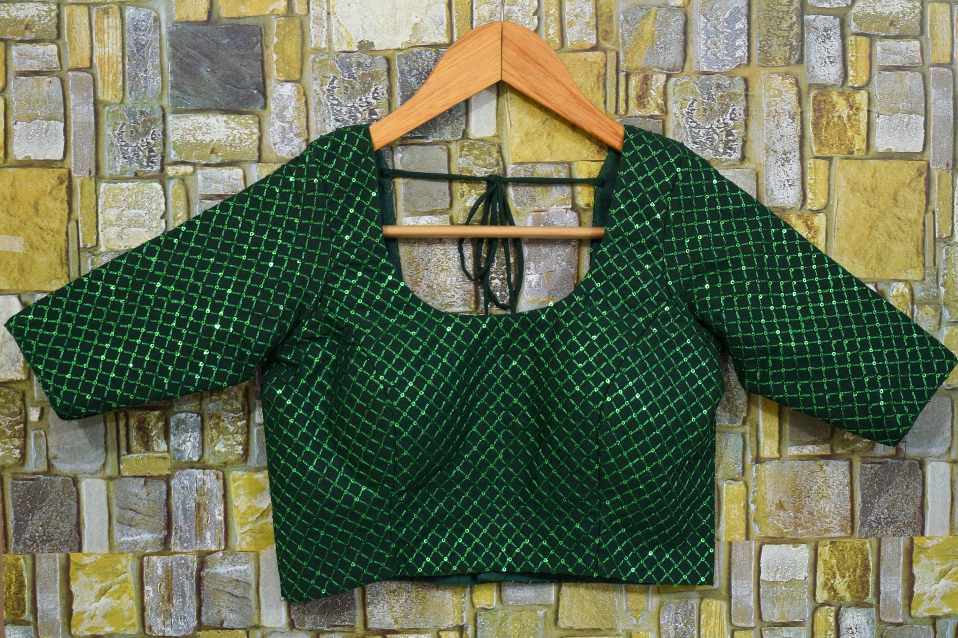 Green saree blouse sequin custom crop top embellished saree top indian ethnic wear elegant saree blouse customised micro crop top