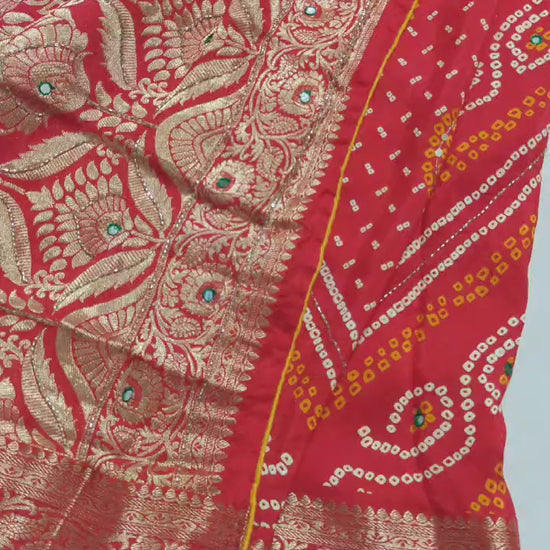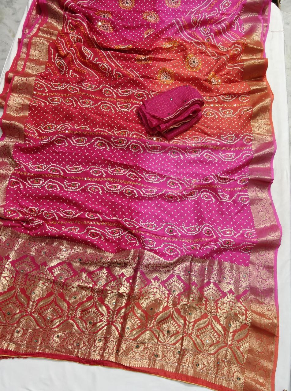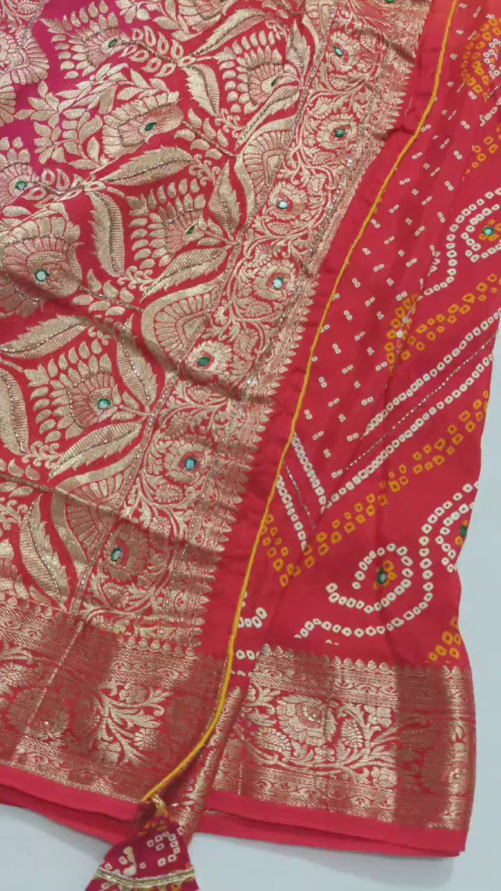 Work: Bandhani Multi-Dyed (Red, Rani Pink, Orange)