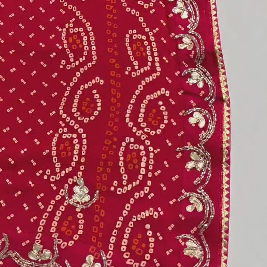 Pure Diamond Chiffon Bandhani Gota Patti & Kardhana Handwork Saree