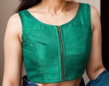 Raw silk blouse saree top without sleeves top front open blouse padded readymade designer blouse green colour