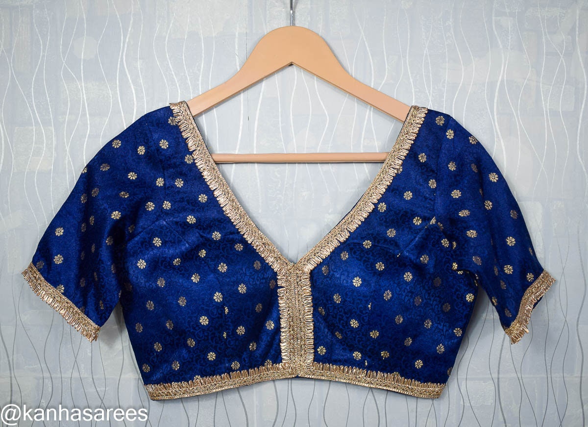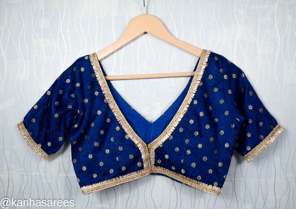 Saree Blouse Handmade Indian Wedding Blouse in Brocade Silk with Lace Trim - Customizable Sizes Available